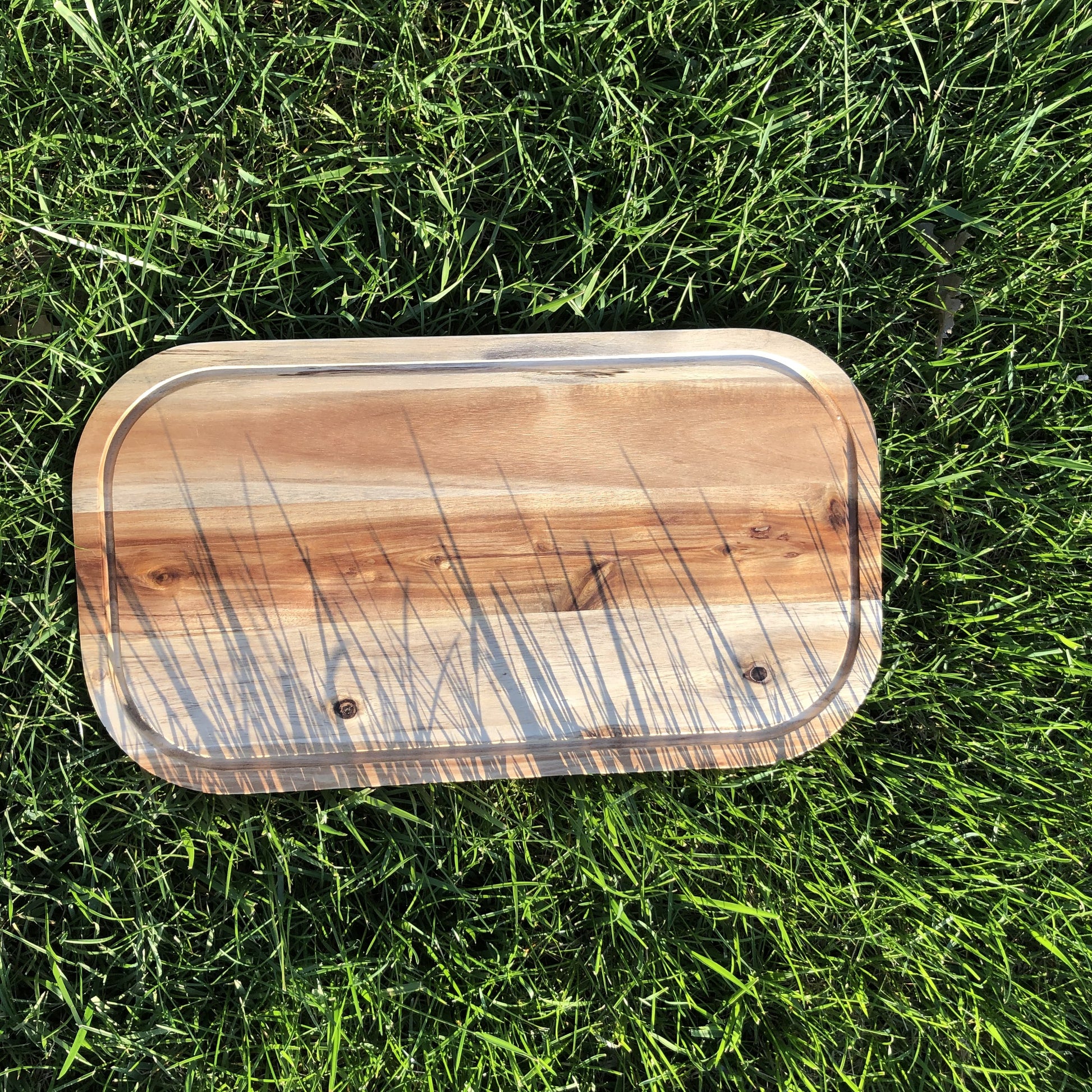 Zavis Green Acacia Wood Serving Rounded Cutting Board With Juice